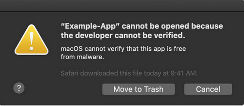 2. De plus, si vous essayez d'installer une application qui n'est pas signée par un développeur identifié, vous verrez un autre message d'avertissement indiquant que l'application ne peut pas être ouverte: